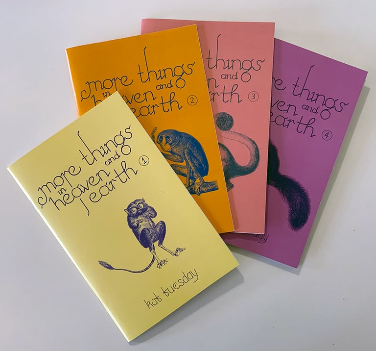 Each issue is a chapter of More Things in Heaven and Earth, a graphic novel in progress. You can read the comic for free online, but the print version occasionally has some special surprises. Each issue is a small print run, possibly never to be seen again...
